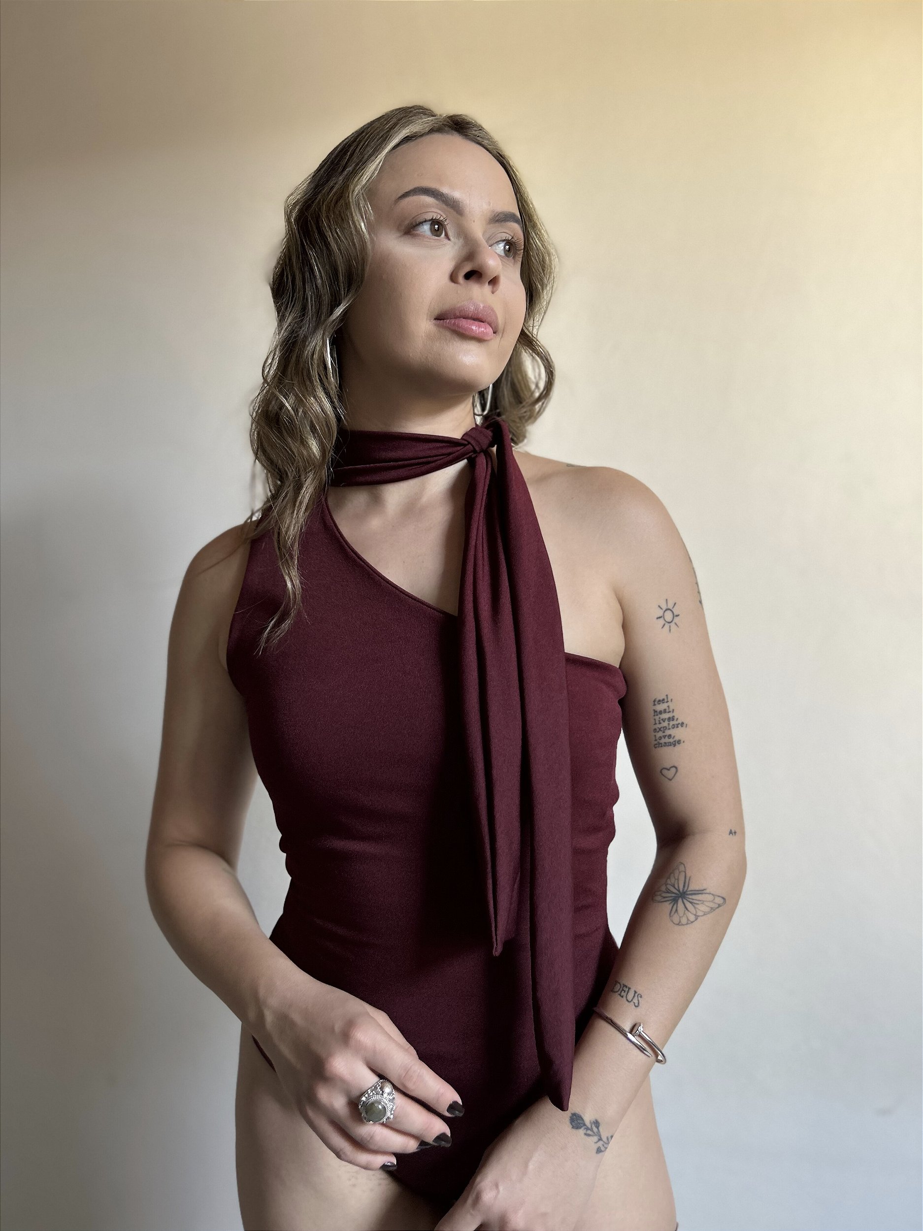 Medidas Lívia ( Altura: 1,70 | Peso: 77kg | Busto: 103cm | Cintura: 88cm | Abdômen: 92 Quadril: 112cm. )Usa: Body Nula Manga Marsala Tamanho: G