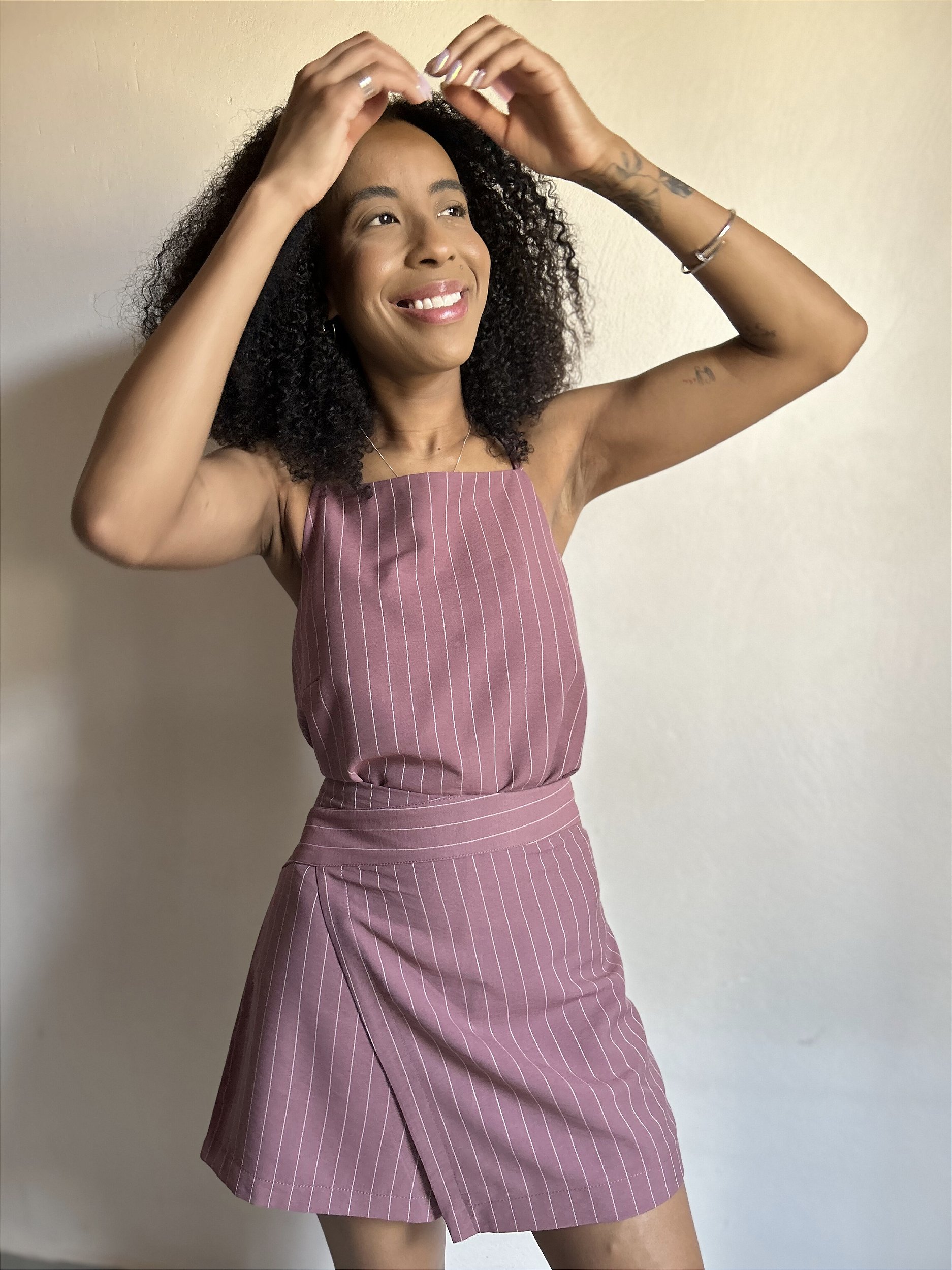 Medidas Stefanny (Altura: 1,57 | Peso: 58kg | Busto: 86cm | Cintura: 75cm | Abdômen: 89 Quadril: 96cm.) Usa: Conjunto Risca de Giz Roxo Tamanho: P